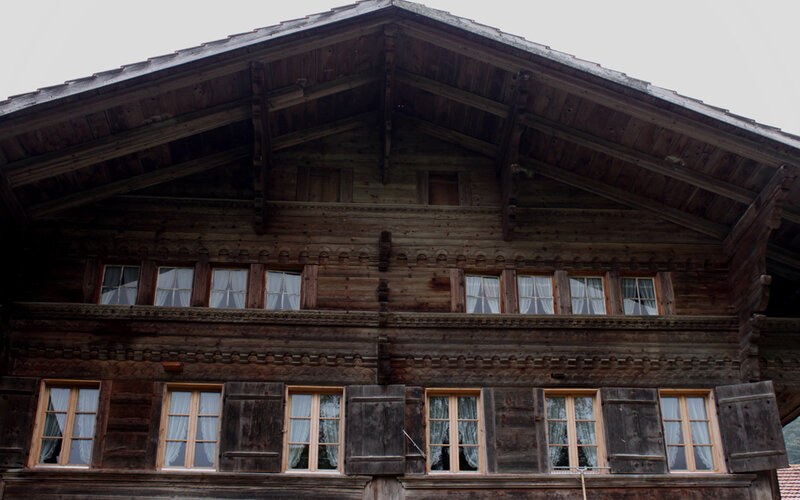Hinderi Gasse 9, um 1520, gehört zu den ältesten Bauernhäusern des Berner Oberlandes. Im Giebel sogenanntes "Heidenkreuz", ein mit zwei Fusshölzern…