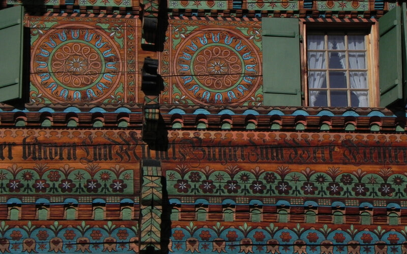 Nr. 802, um 1800. Der reichgeschmückte, aber nicht datierte Bau weist nahe Verwandschaft mit Hausweg 4 von 1792 in Unterbächen auf, er dürfte…